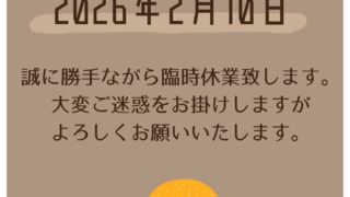 お店の情報 2月8日(日)・2月9日(月)定休日