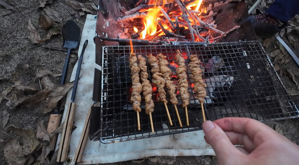 夕食は炭火で焼き鳥と焼肉を食べました😊