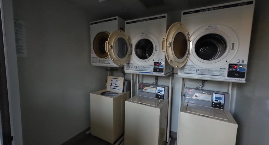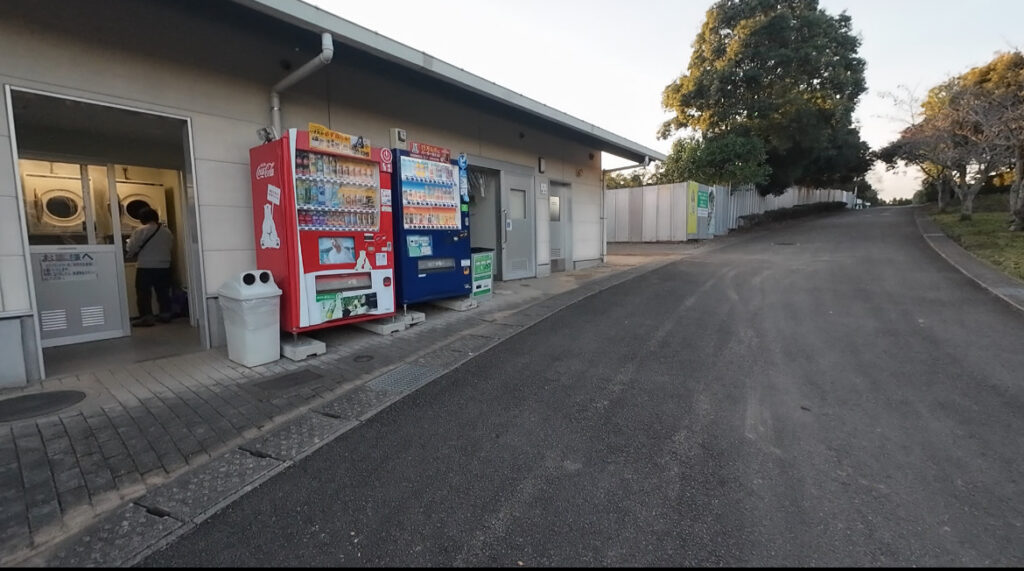 管理棟横にはコインシャワーとコインランドリー、自販機もあります。