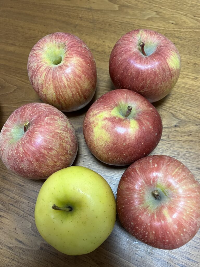 りんご🍎は赤(シナノスイート、サンフジ等)から5個+青りんご1個で1000円(税込)。