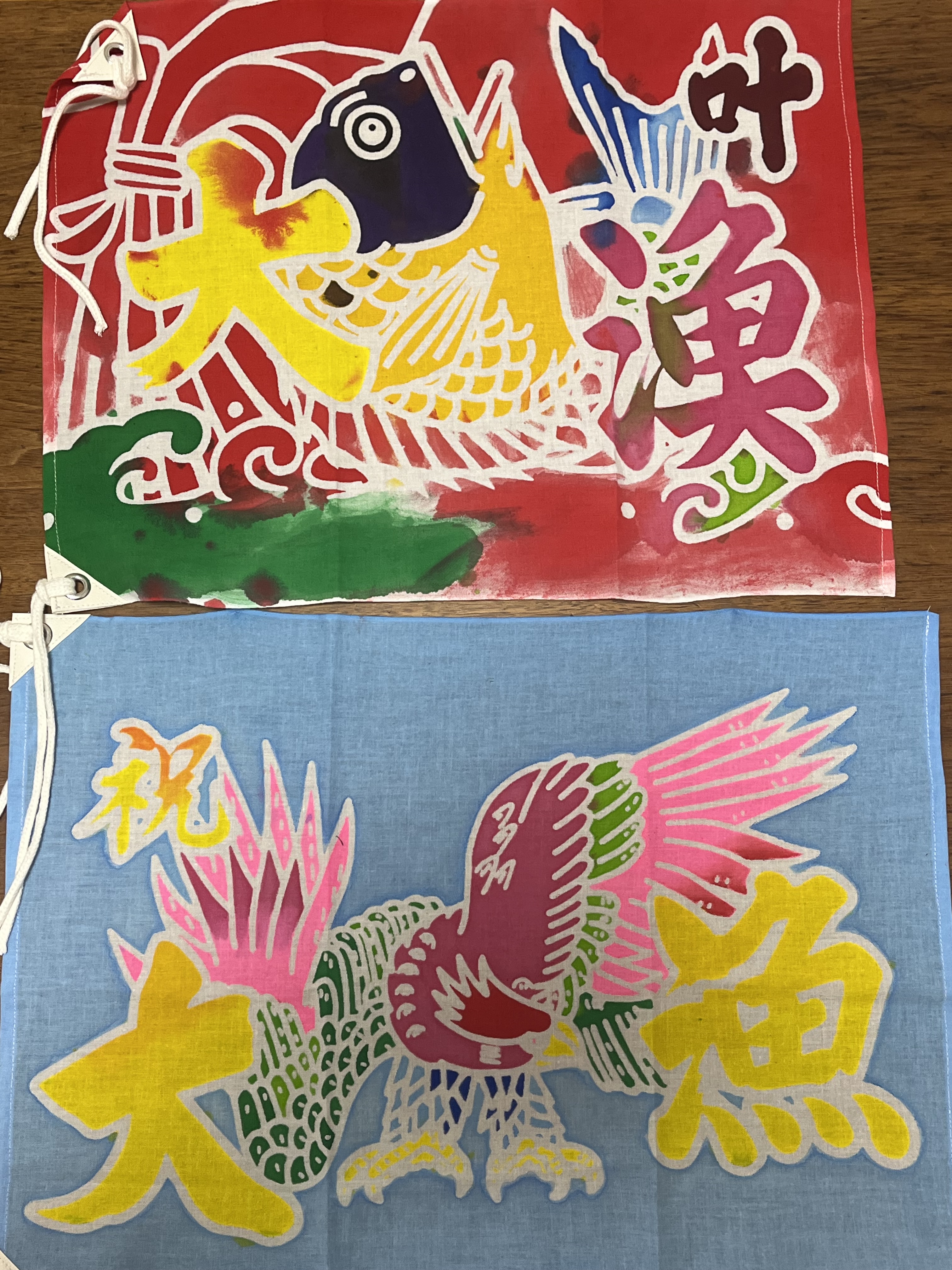 どちらも個性あふれる素敵な大漁旗が完成して子どもたちも大満足でした😊