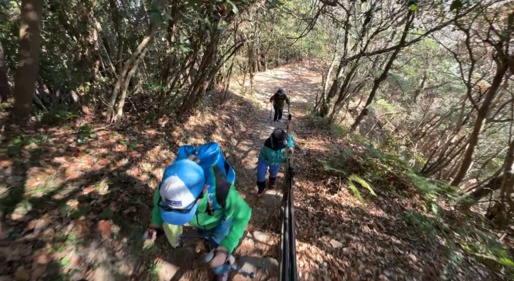 楽しみながら登っていると最後の難関。156段の階段です。