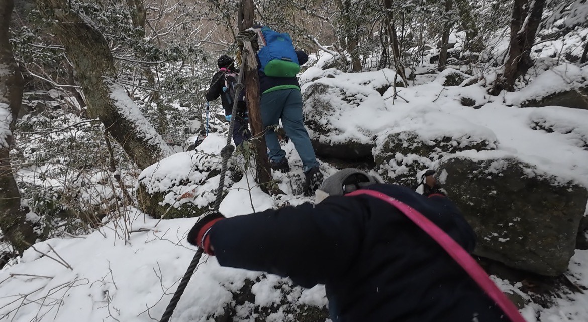 ロープがある所はしっかり掴んで、安全第一すすみます。