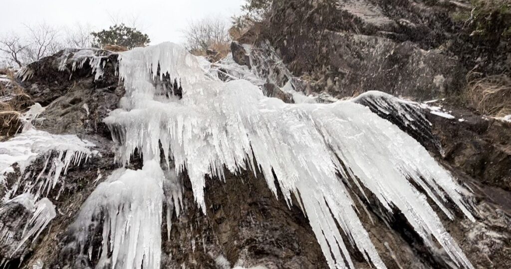 難所ヶ滝は冬になると氷瀑が見られる人気スポットですが、雪道・凍結・アイゼン装着など、