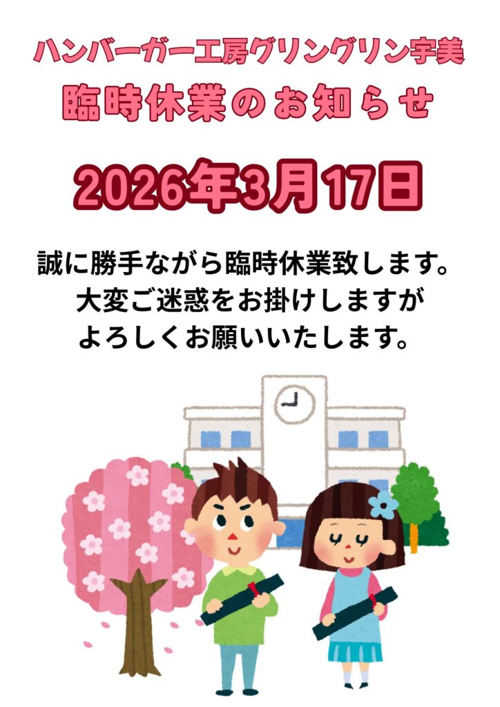 本日3月17日(火曜日)は都合により臨時休業致します。