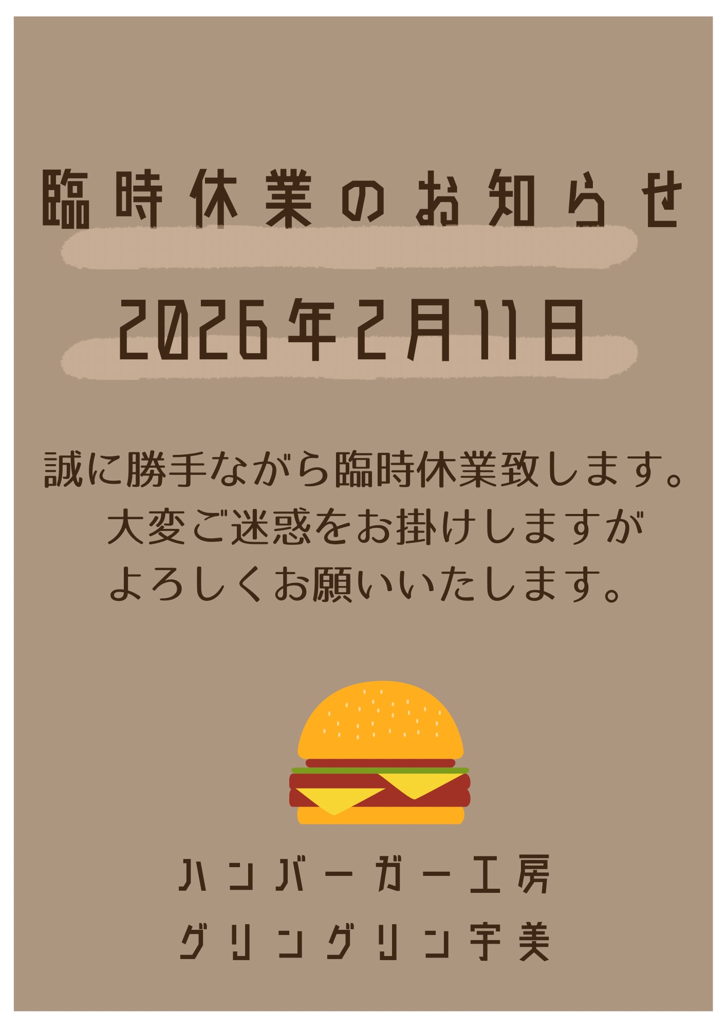 こんにちは。ハンバーガー工房グリングリン宇美です。
