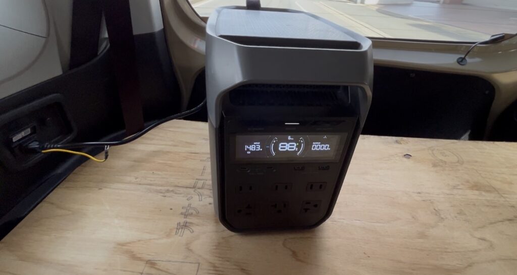 ポータブル電源(EcoFlow DELTA3)の充電スピードは1500Wに設定しています。