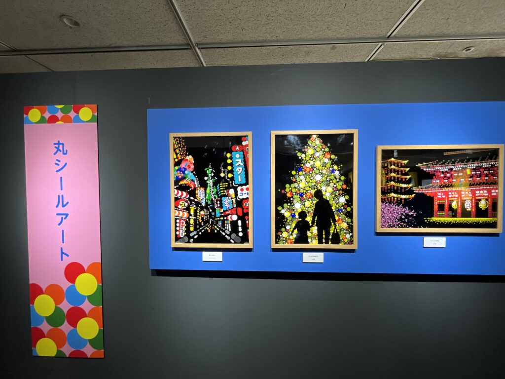 丸シールを大きさや色を変えて使って、絵画のような作品「丸シールアート」